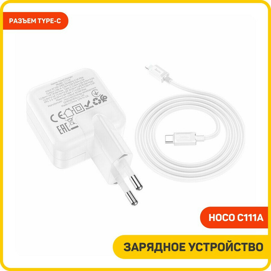 Зарядки для гаджетов Сетевое зарядное устройство (СЗУ) Hoco C111A QC 3.0 (USB/Type-C PD) + кабель Type-C-Lightning, 3 А, белый