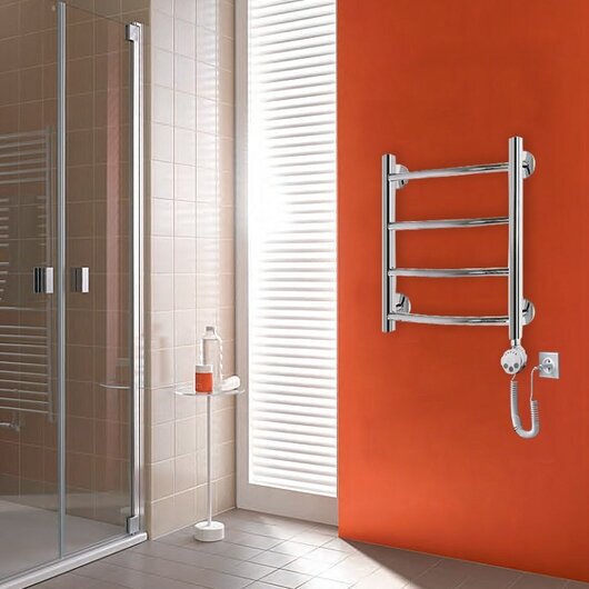 Лучшие цены. Электрический полотенцесушитель с терморегулятором Акванерж Дуга 500x430 правый тэн предназначен для сушки тканевых изделий, обогрева ванных и душевых комнат и поддержания нормального микроклимата в ванной комнате. Температура в рабочем режиме 55С +-10, регулируется терморегулятором от 30С до 70С. Двойная система предохранения, автоматическое отключение и включение прибора для экономии электроэнергии. От перегревания ограничитель температуры отключает нагревательный элемент. Магазины в вашем городе.
