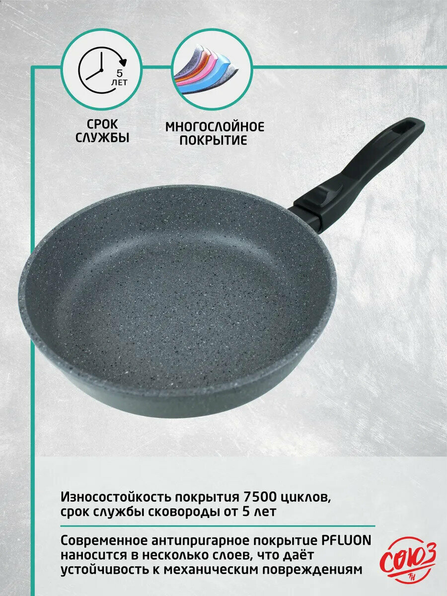 Сковорода СоюзТН SZ2130 SZ2130 20см алюминий гран.покр. ручка съемная серый