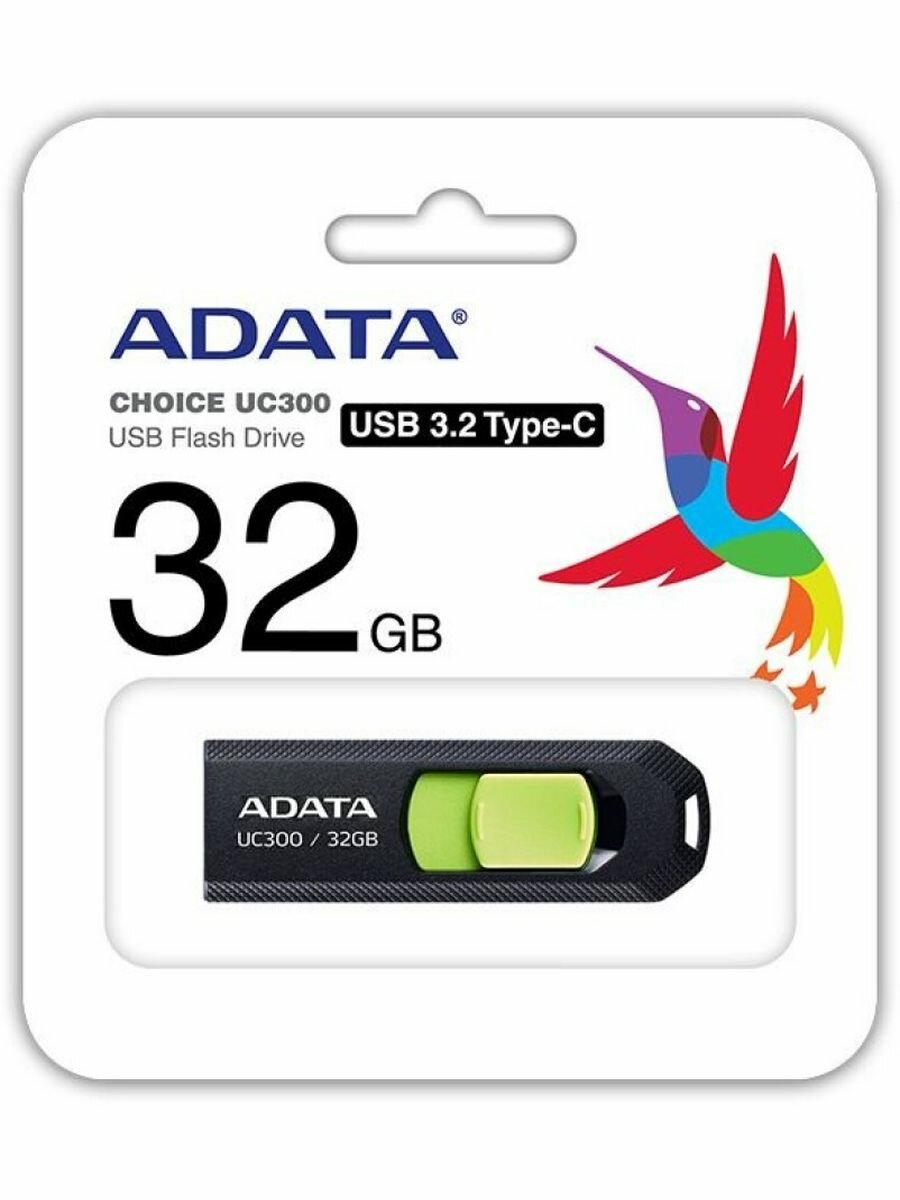USB-флешки Флешка USB (Type-C) A-Data UC300 32ГБ, USB3.2, черный и зеленый [acho-uc300-32g-rbk/gn]