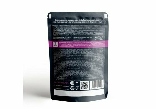 Лучшие цены. Mr. Buffalo Adult сенсетив пауч индейка в соусе Производство: Mr. Buffalo, Россия. Описание: Полнорационный влажный корм Mr. Buffalo с индейкой для взрослых кошек с чувствительным пищеварением изготовлен из натуральных, гипоаллергенных и легко усваиваемых ингредиентов. В оптимальном количестве содержит животные белки и жиры, питательные вещества, а также микроэлементы, необходимые для жизнедеятельности вашей кошки. Магазины в вашем городе.