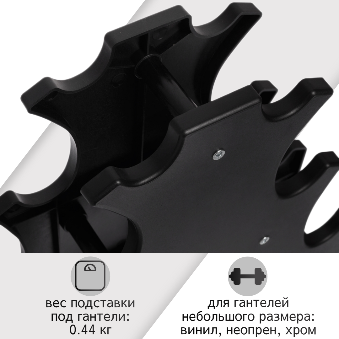 Подставки и крепления Подставка под гантели для фитнеса на 3 пары (ABS-пластик), черная, STRONG BODY