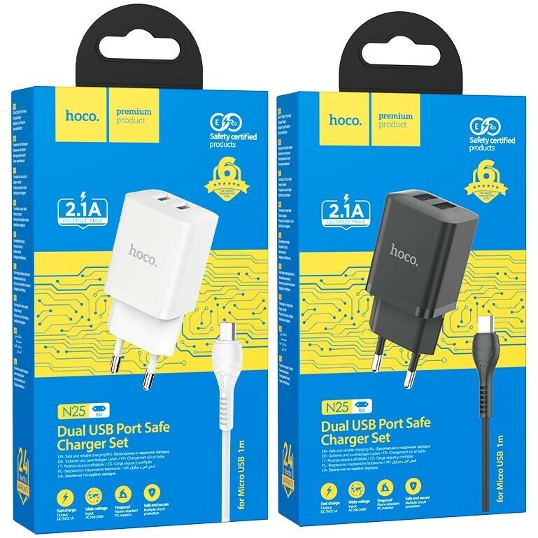 Зарядки для гаджетов Адаптер питания Hoco N25 Maker dual port fast charger (2USB: 5V max 2.1A) Черный