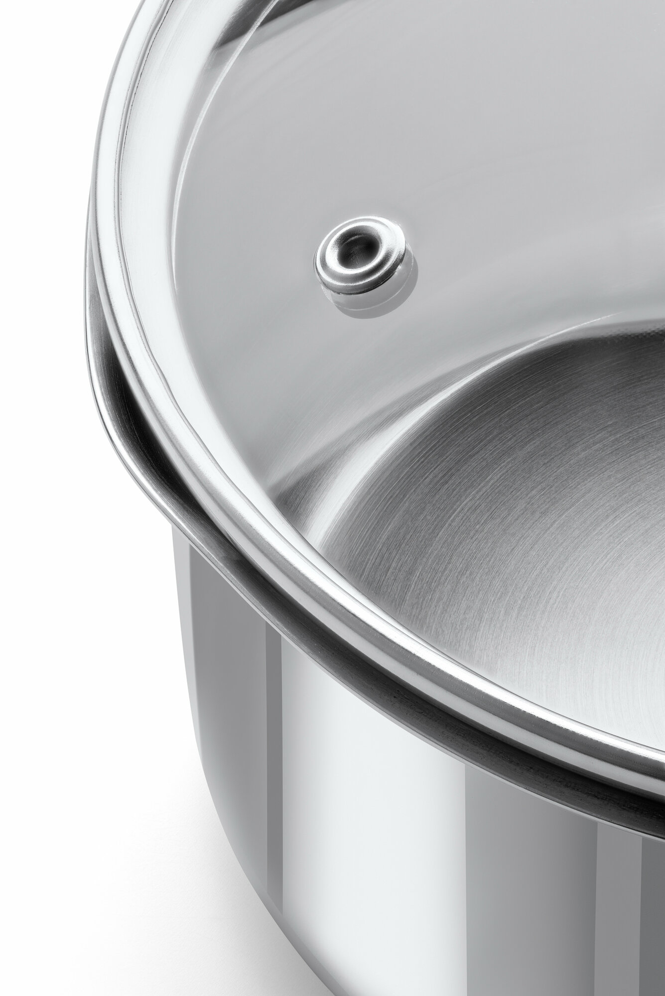 Кастрюли Кастрюля из нержавеющей стали с отверстием для слива со стеклянной крышкой APOLLO "Fisso", 5 л
