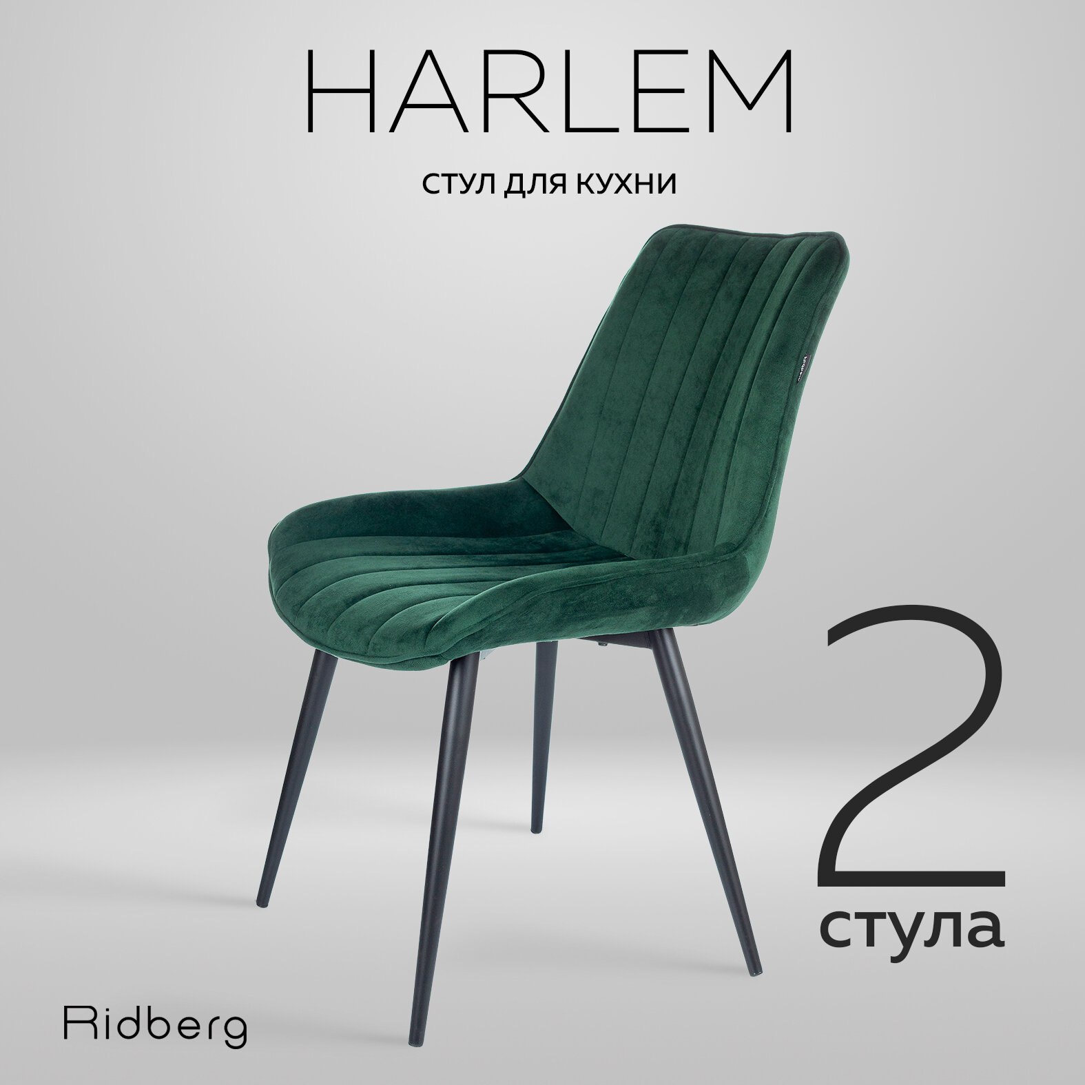 Стулья Ridberg "HARLEM" - 2 стула для кухни, обитые велюром зеленого цвета