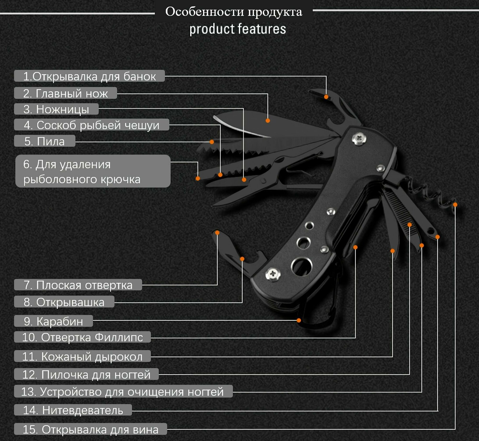 Ножи и мультитулы Нож мультитул походный 15 в 1 /отвертка / мультиинструмент