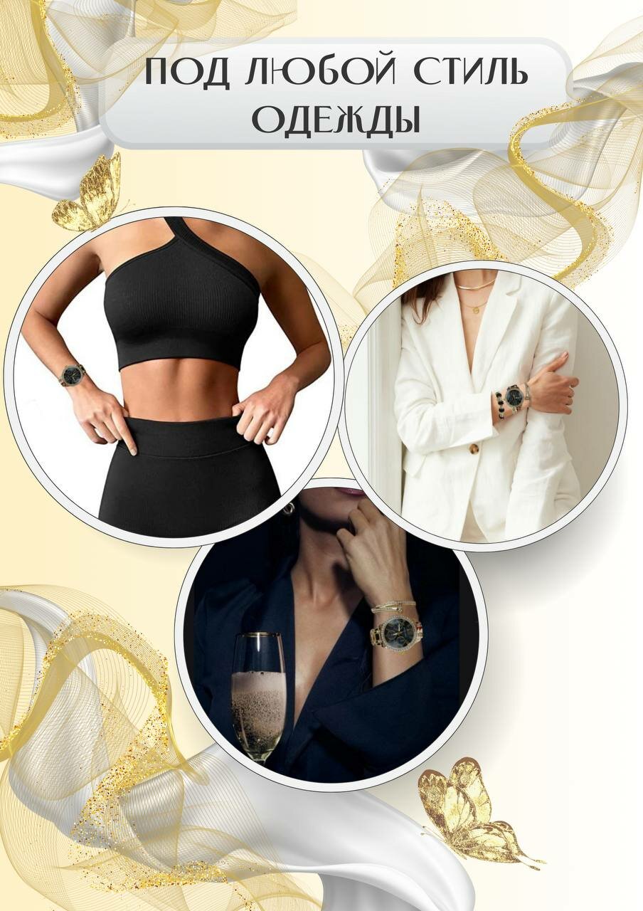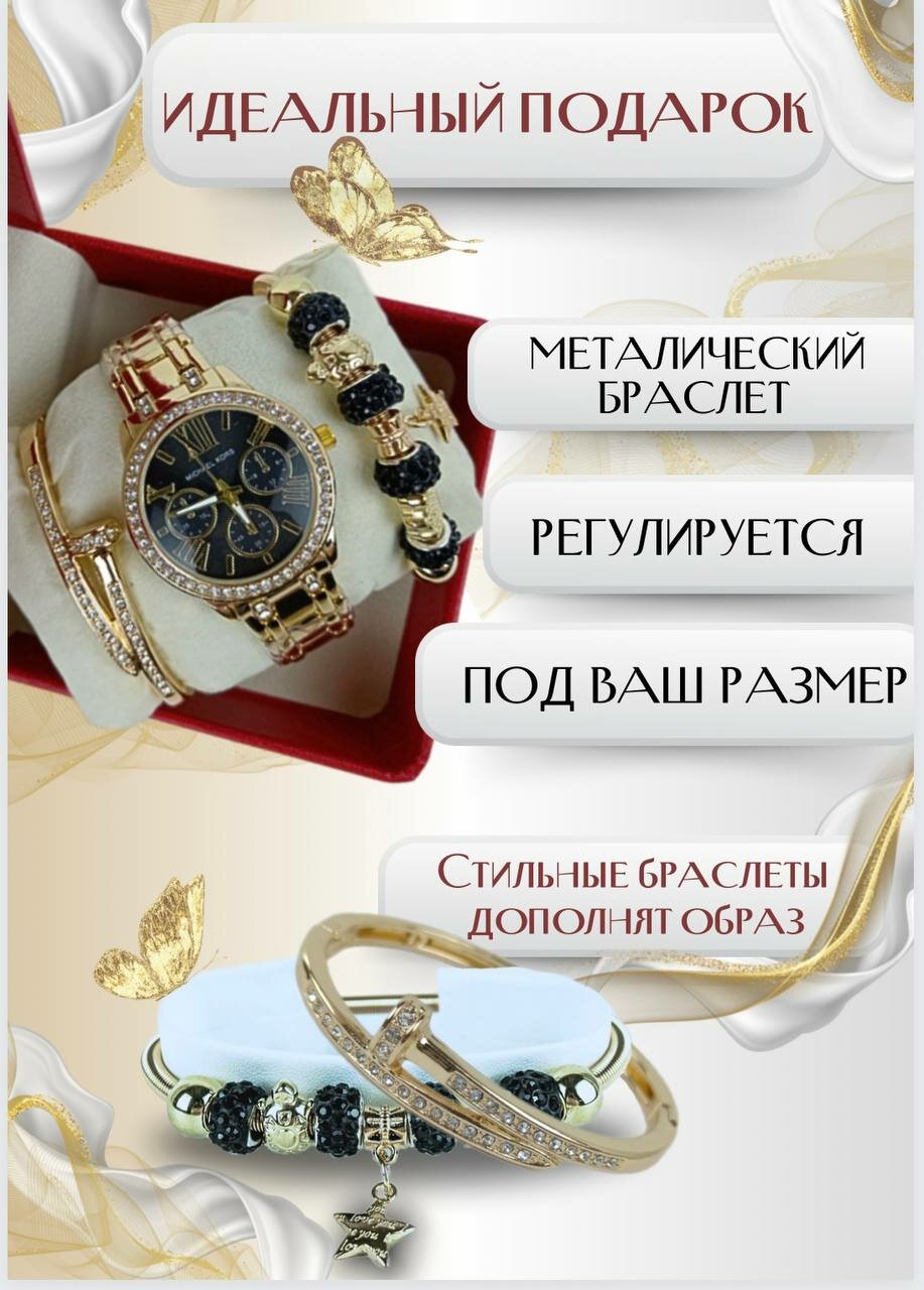 Наручные часы Подарочный набор женские наручные часы с двумя браслетами, золото-черный