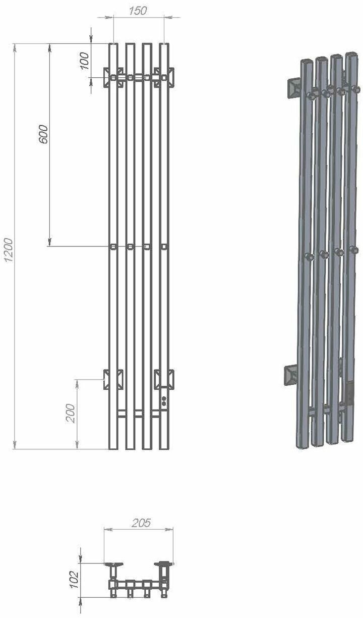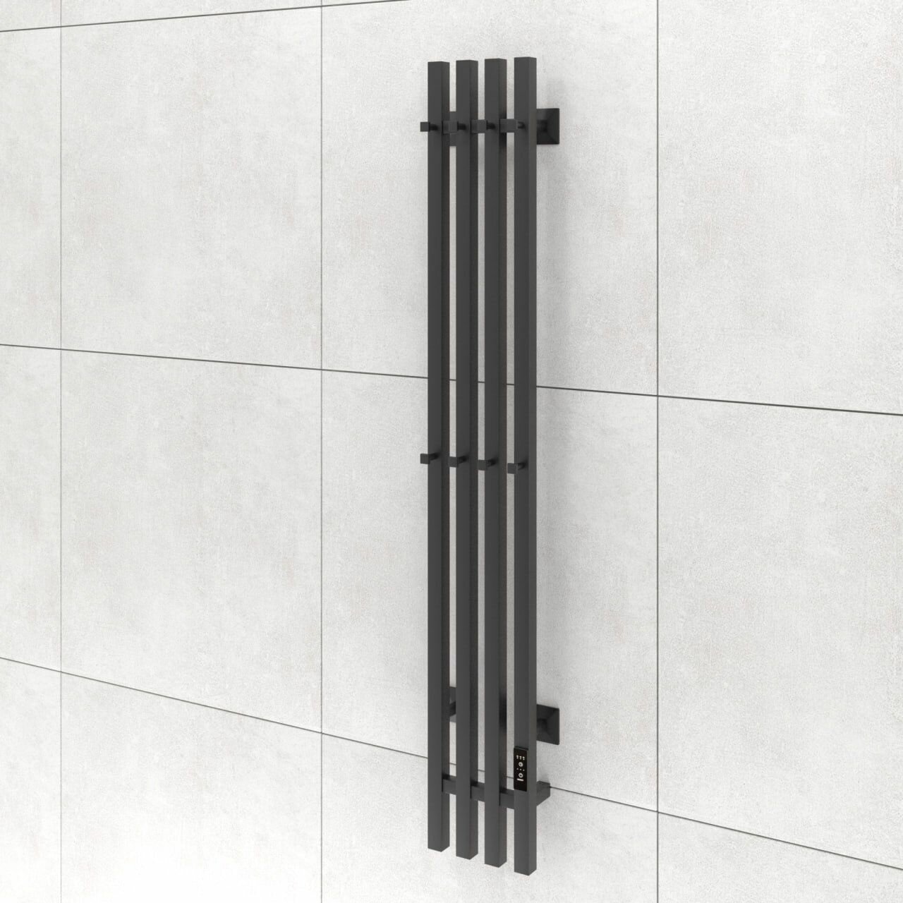 Полотенцесушители Лофт полотенцесушитель электрический, 8 крючков, 1200х150 мм, 4 секции, черный матовый правое подключение