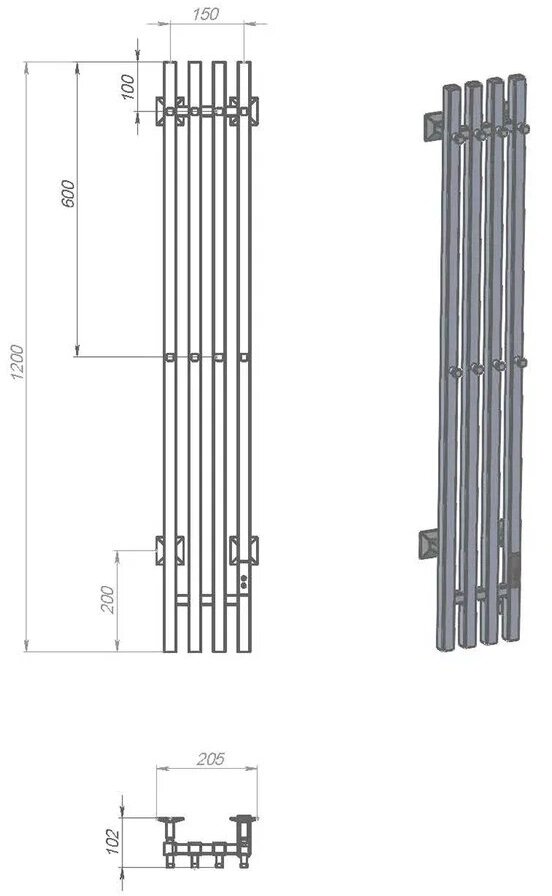 Полотенцесушители Лофт полотенцесушитель электрический, 8 крючков, 1200х150 мм, 4 секции, белый матовый правое подключение