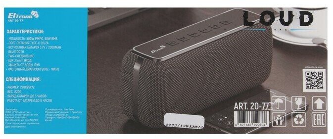 Портативные колонки Портативная колонка ELTRONIC LOUD, 50 Вт, 2000 мАч, microSD, BT, AUX, TWS, IPX5
