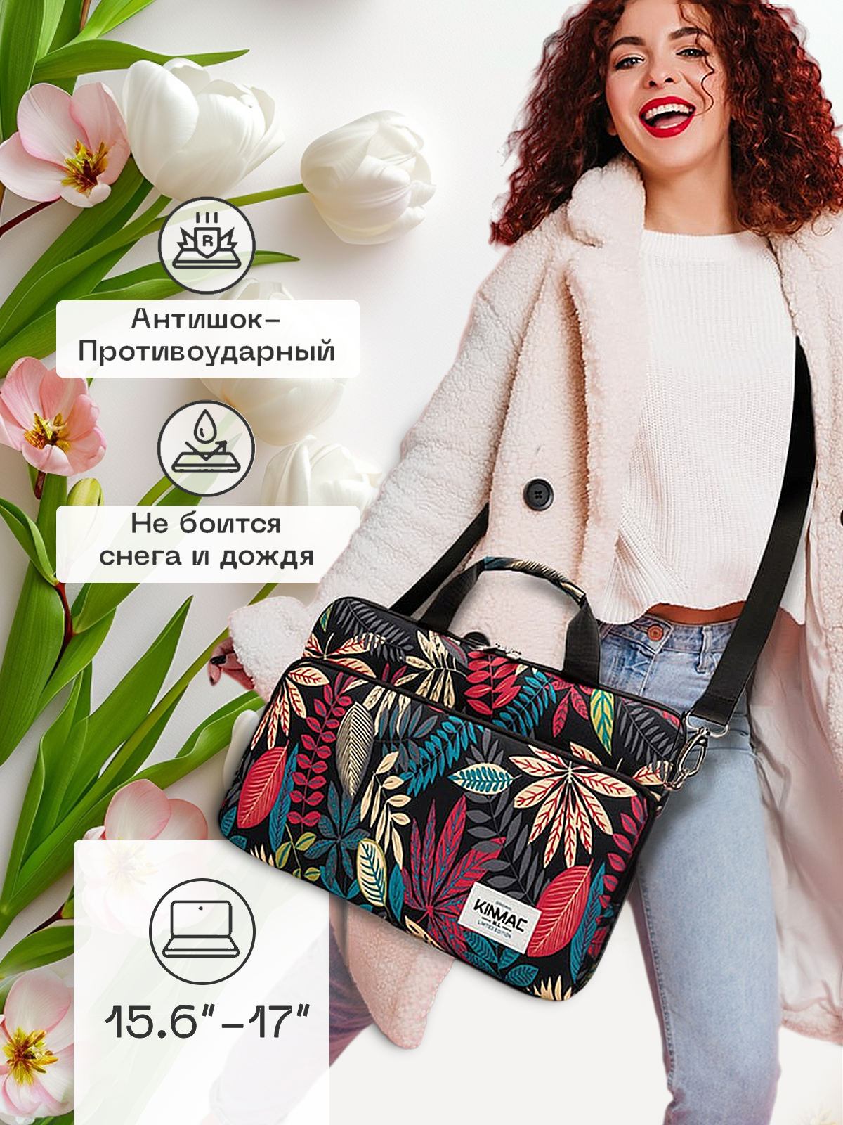 Сумка для ноутбука 15.6, 16 и 17 дюймов KINMAC с ремнем на плечо и большим карманом спереди (Цветы на белом) 3 759 ₽ Подробнее