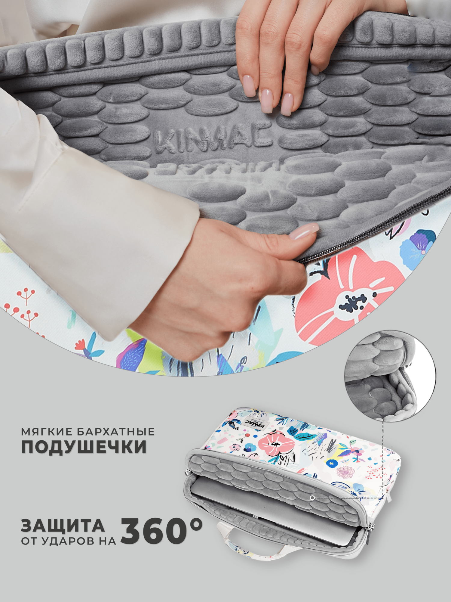 Сумки для ноутбуков Сумка для ноутбука 15.6, 16 и 17 дюймов KINMAC с ремнем на плечо и большим карманом спереди (Цветы на белом)
