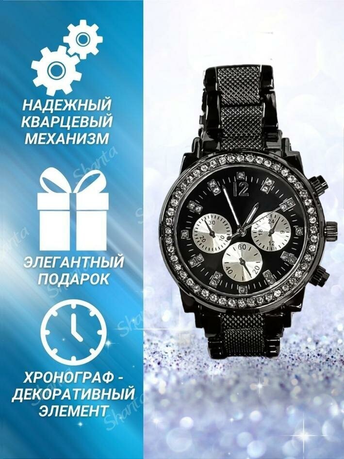 Наручные часы Часы наручные женские, часы со стразами для девушек, черный