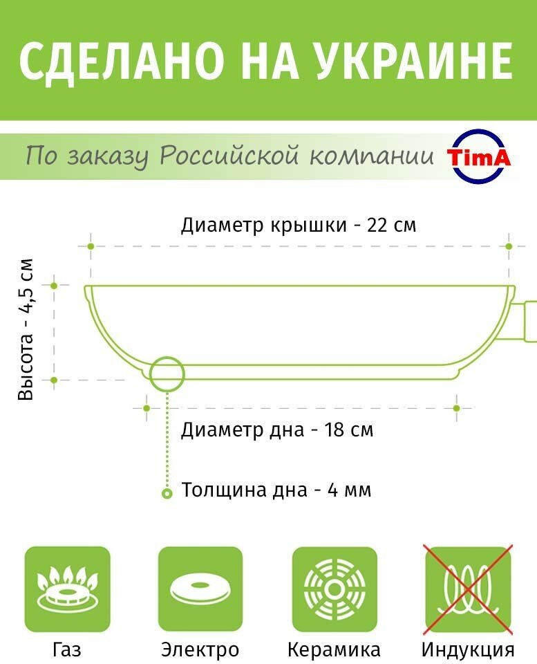 Сковородки Сковорода 22см TIMA/биол Оптима с антипригарным покрытием Greblon + Лопатка в подарок