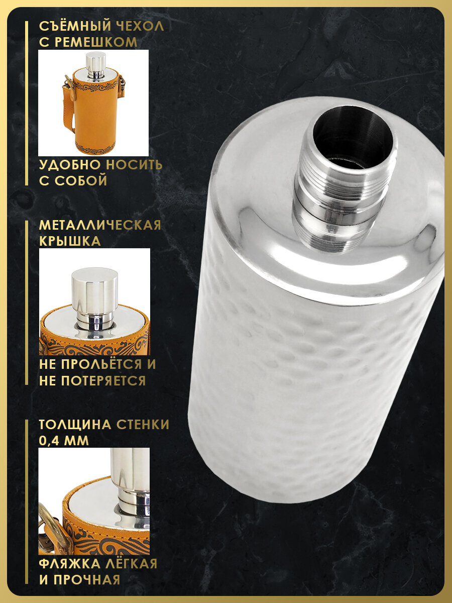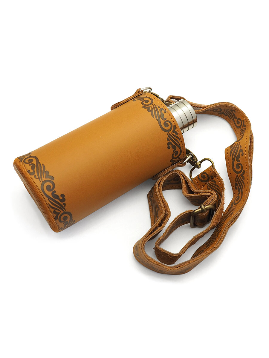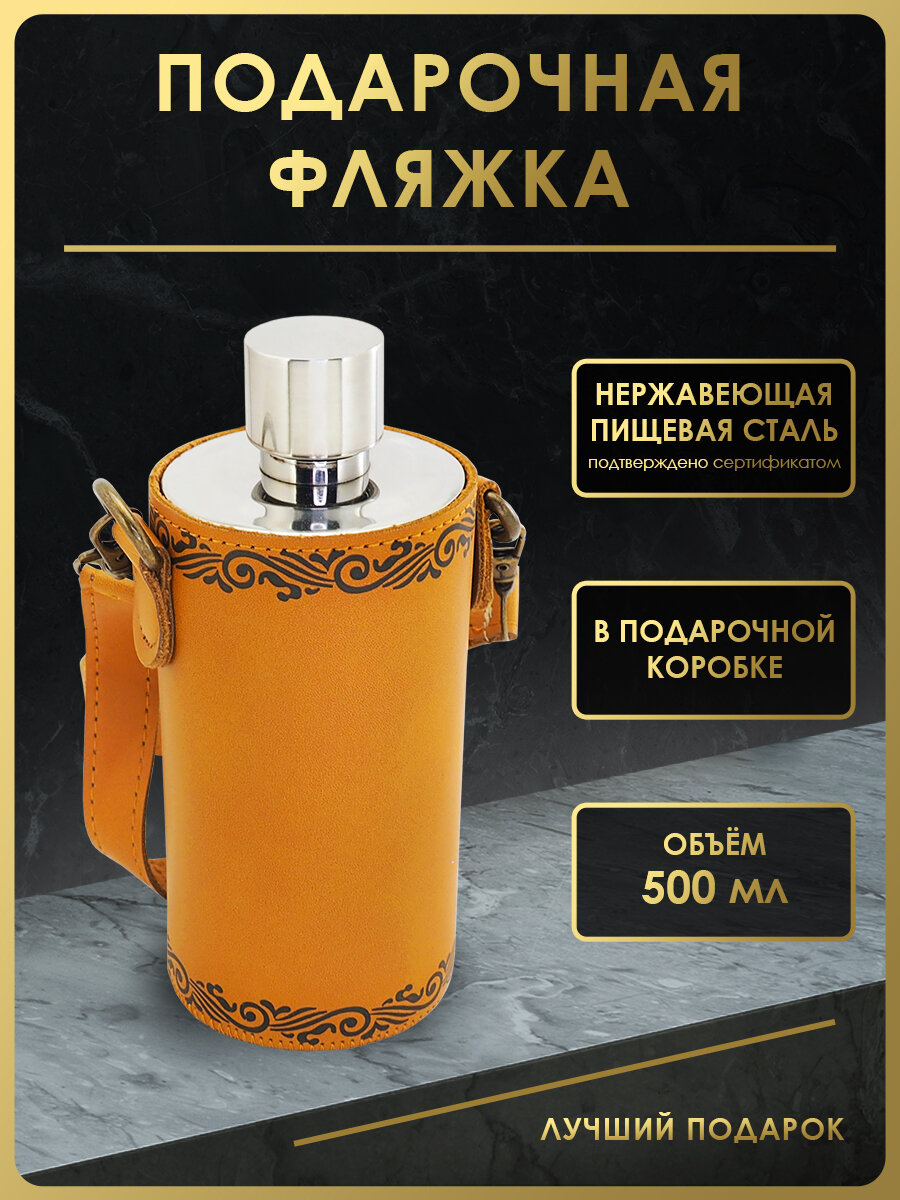 Фляги и бутылки Фляга FL18-6K, 480 мл, нержавеющая сталь, кожа, цвет коричневый