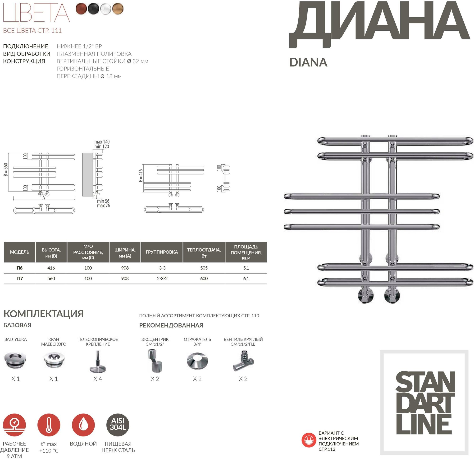 Полотенцесушитель Полотенцесушитель Диана П7, 100мм*560мм, Terminus (Россия), арт ДианаП7-100560