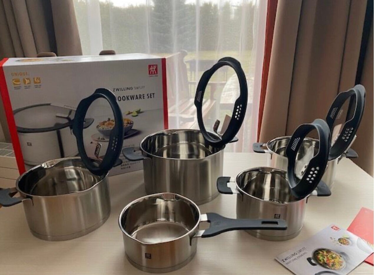 Кастрюли Набор посуды из нержавеющей стали из 4-х кастрюль со стеклянными крышками и ковша, стальной, серия Simplify, Zwilling, 66870-005