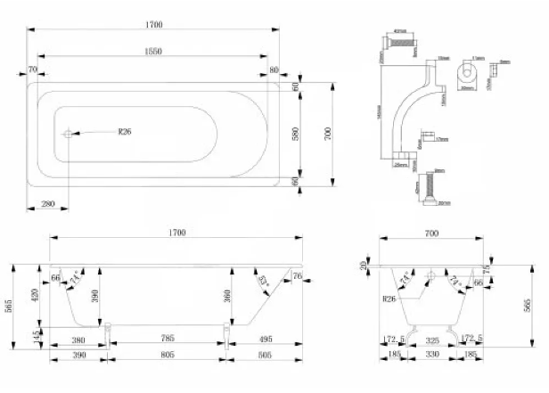 | Комплектация | ванна / ножки / сифон |