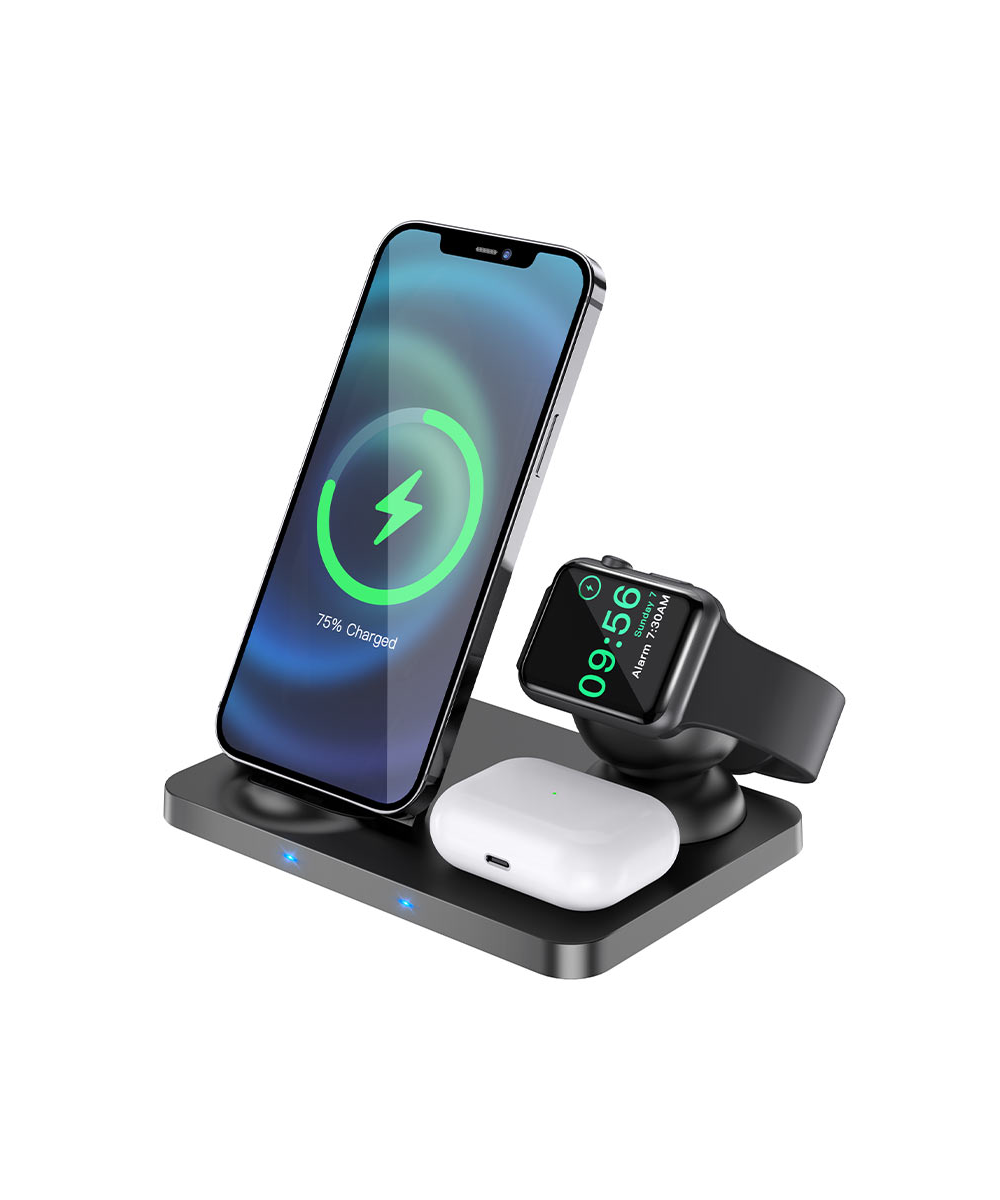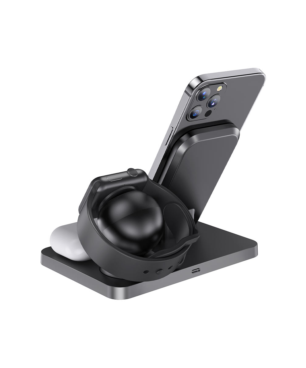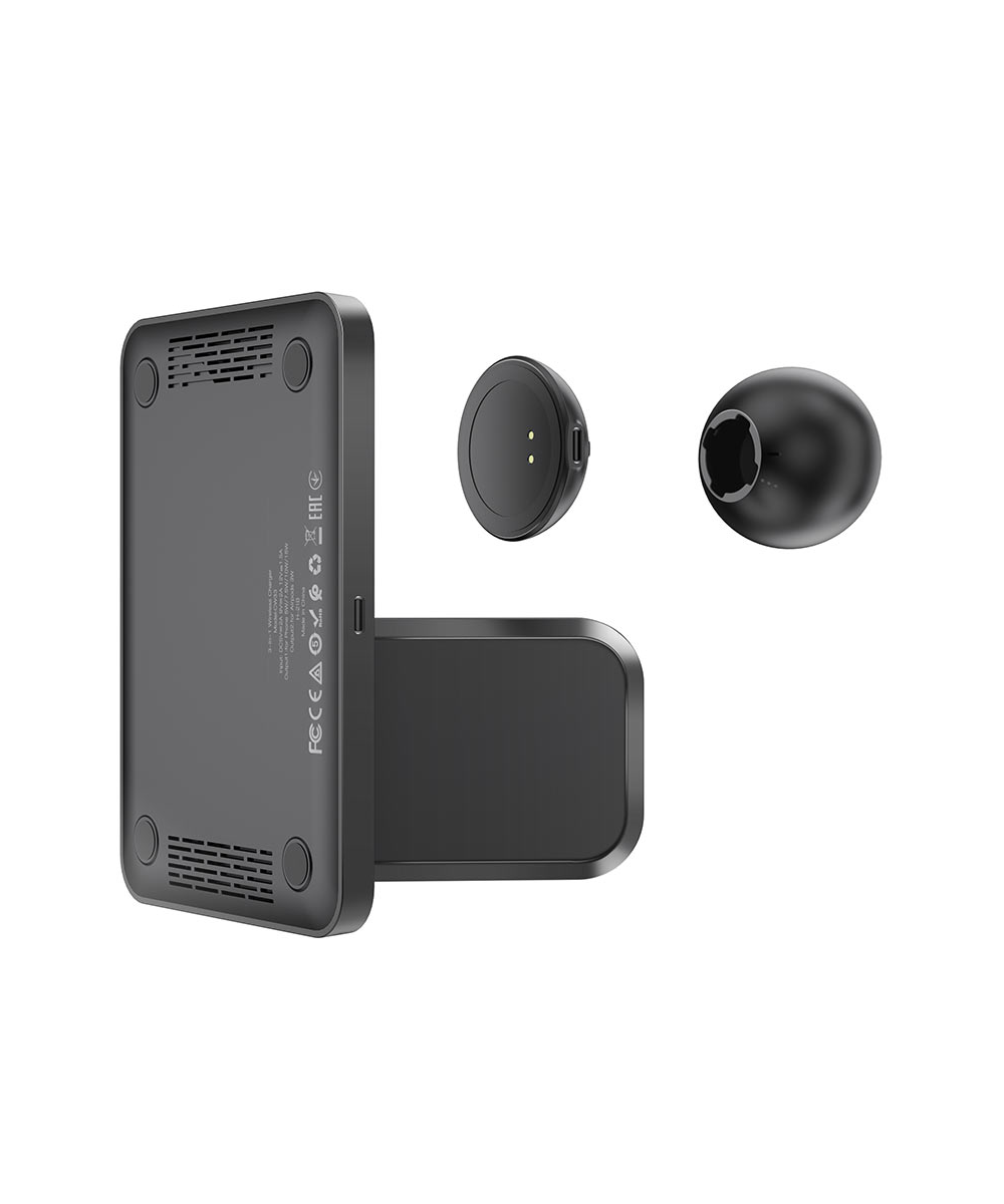 Зарядки для гаджетов Беспроводная быстрая зарядная станция FAST CHARGE QI для смартфона наушников умных часов CW LOST CITY, черная
