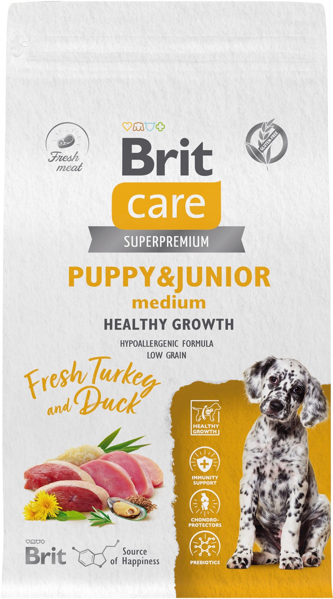 BRIT CARE DOG PUPPY & JUNIOR MEDIUM HEALTHY GROWTH для щенков средних пород с индейкой и уткой (1,5 кг)