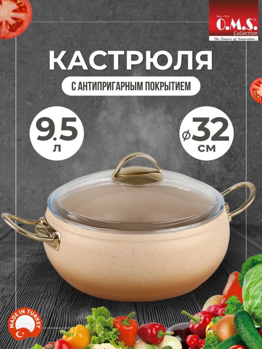 Кастрюли Кастрюля с антипригарным покрытием, 32 см, 9,5 л, O.M.S. Collection, кремового цвета