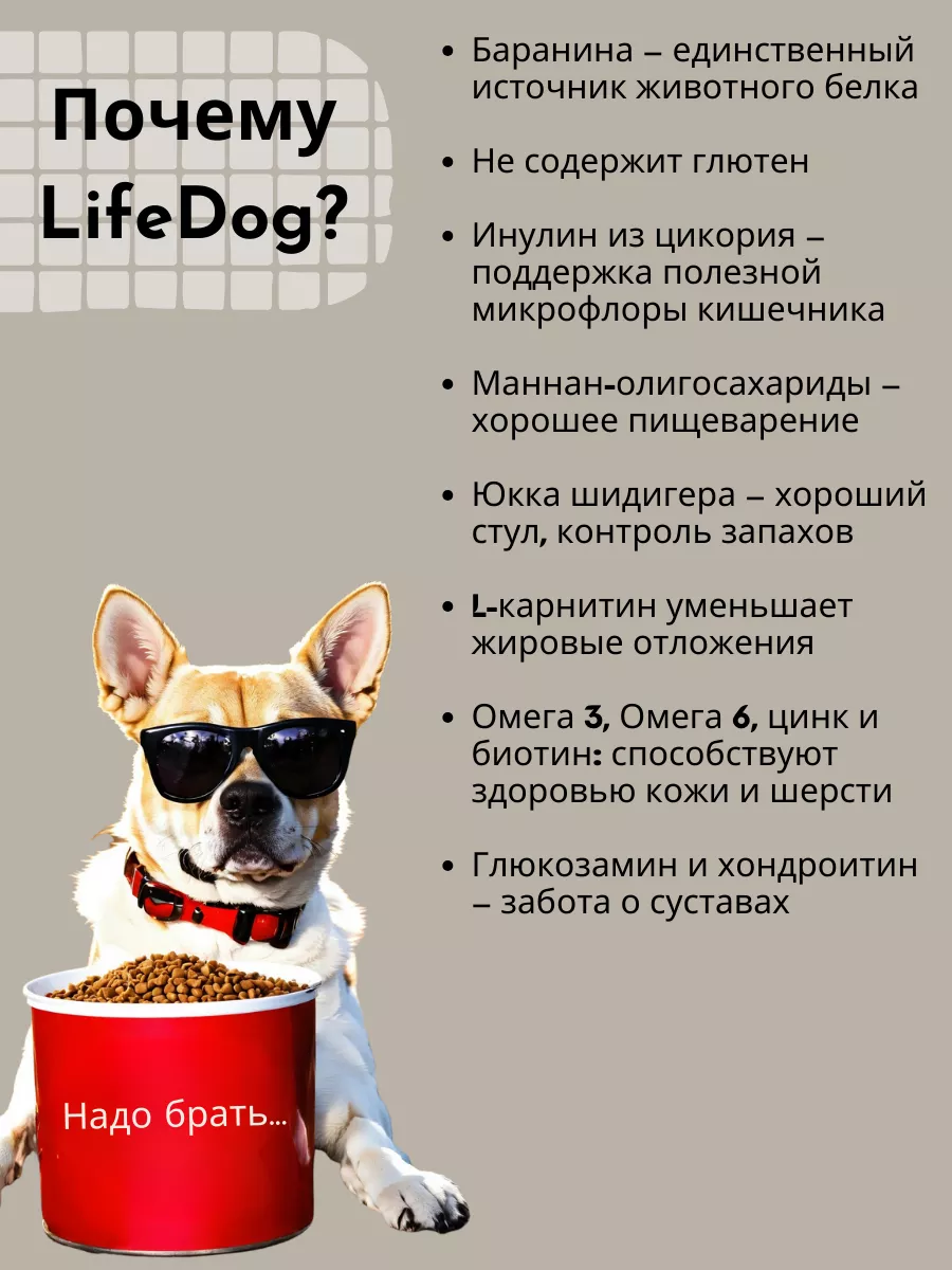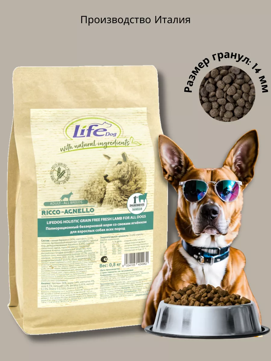 Корм для собак Корм Lifedog Holistic GRAIN FREE Fresh LAMB 800г беззерновой для собак со свежим ягнёнком