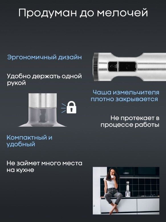 Миксеры и блендеры Погружной блендер 4в1/измельчитель/миксер/домашний,кулинарный,блендер для смузи, коктейлей,мерный стакан 0.7л,1500Вт,белый