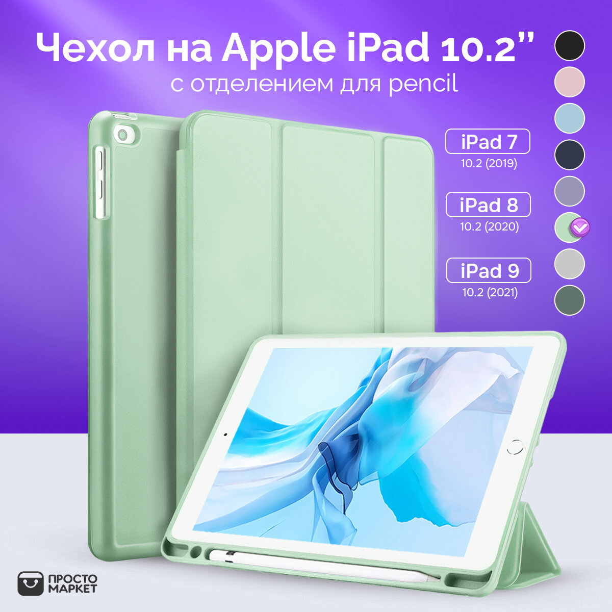 Чехлы для планшетов Чехол-обложка для Apple iPad 10.2" (iPad 7/iPad 8/iPad 9) зеленый/Чехол для стилуса Apple Pencil/ Чехол с подставкой/Обложка Smart Cover iPad 10.2