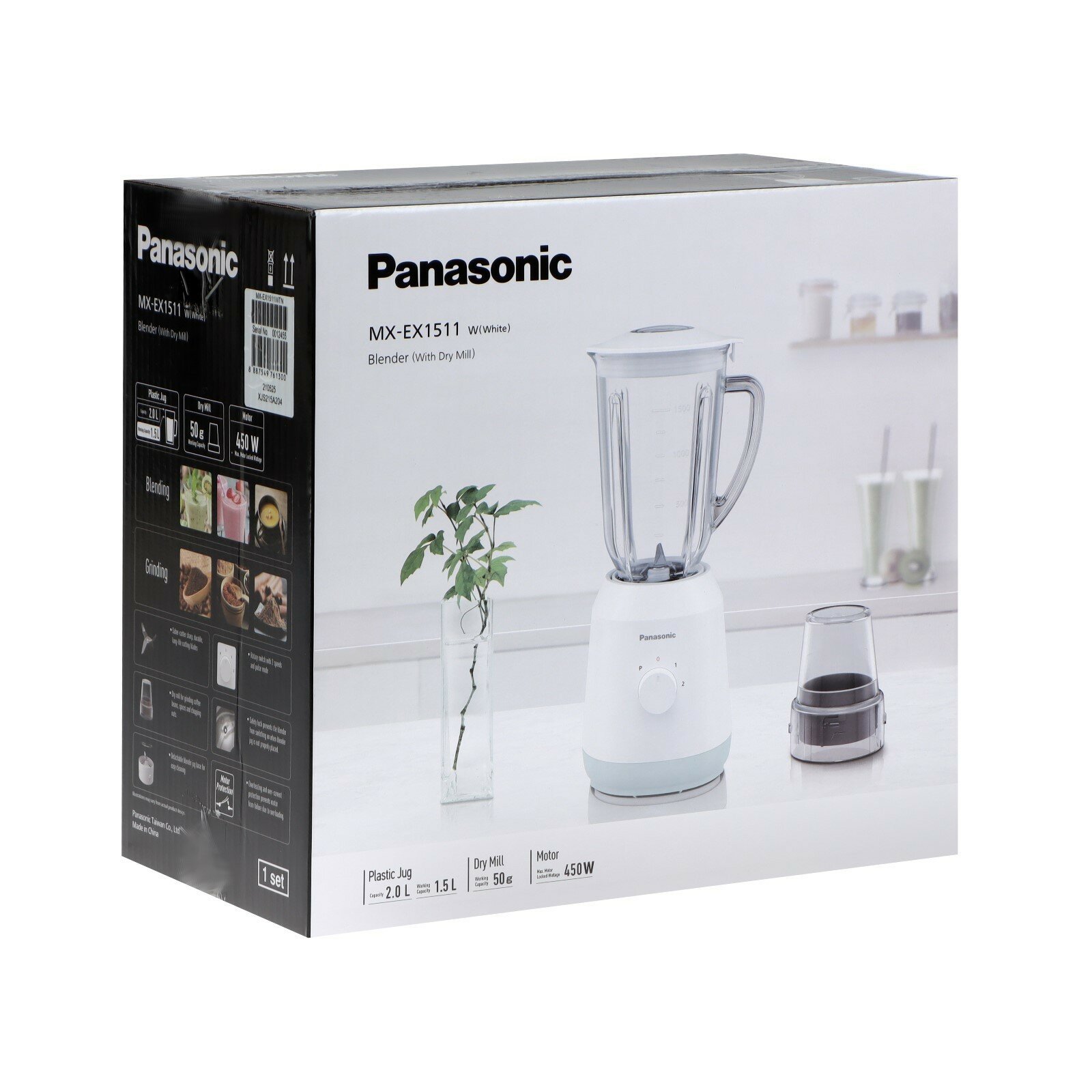 Миксеры и блендеры Блендер MX-EX1511, стационарный, 450 Вт, 2 л, белый