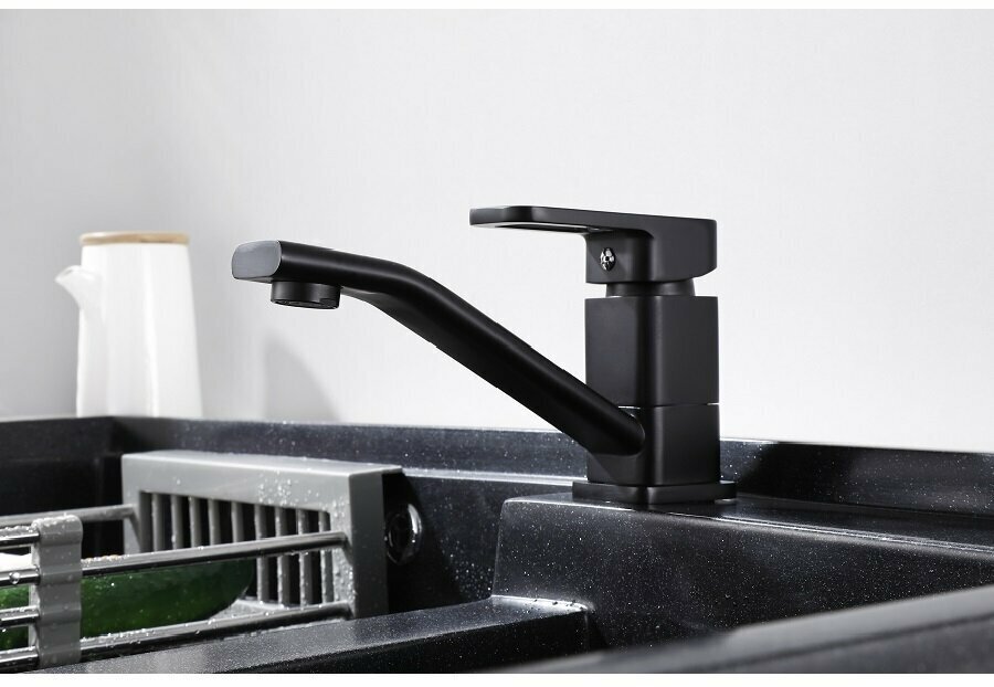 Смесители Смеситель для раковины/ умывальника MYNAH 115 мм, цвет черный матовый, однорычажное управление, на гайке. Материал латунь.