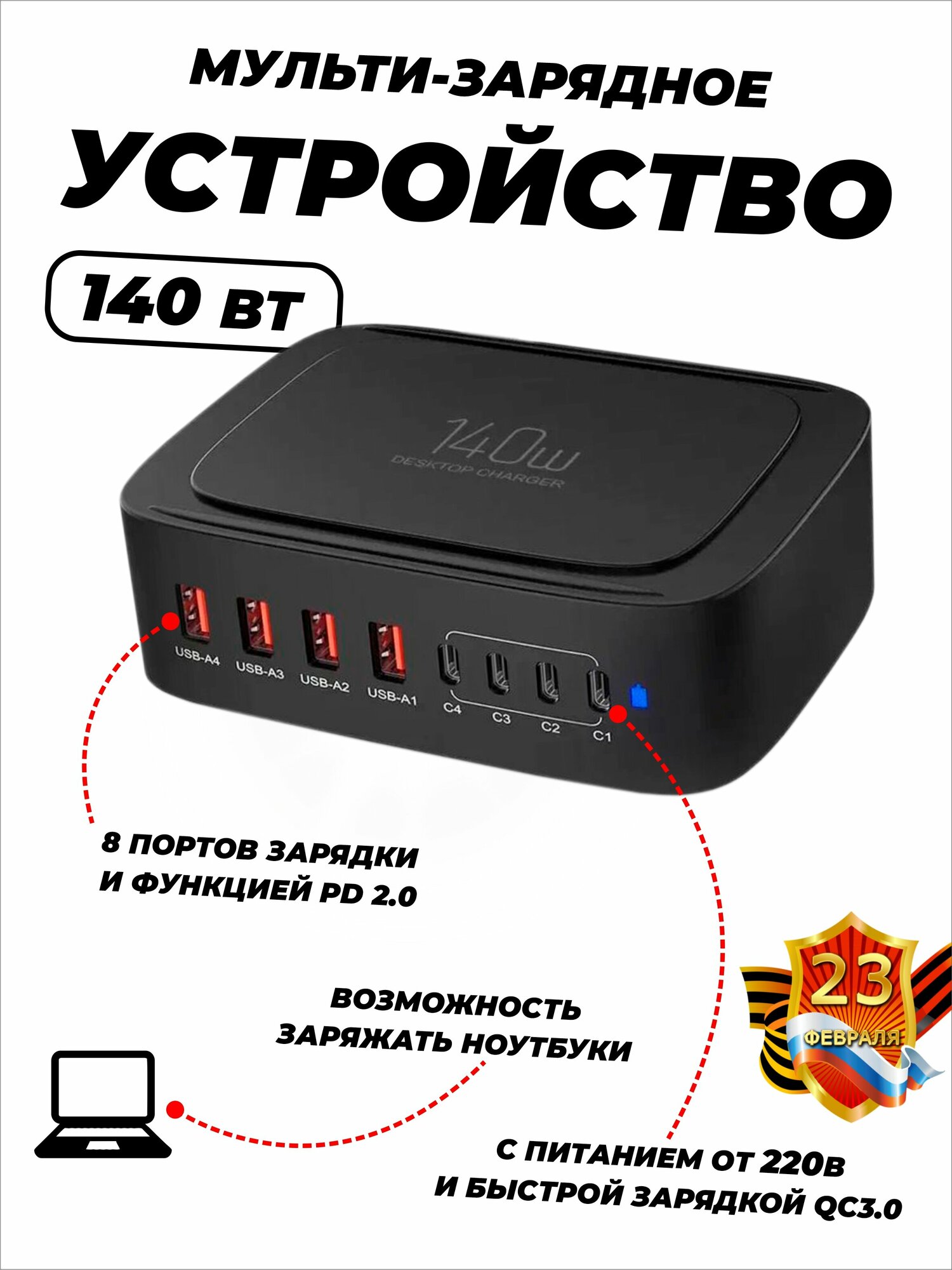 Зарядки для гаджетов Сетевое зарядное устройство для телефона и гаджетов 140 Вт
