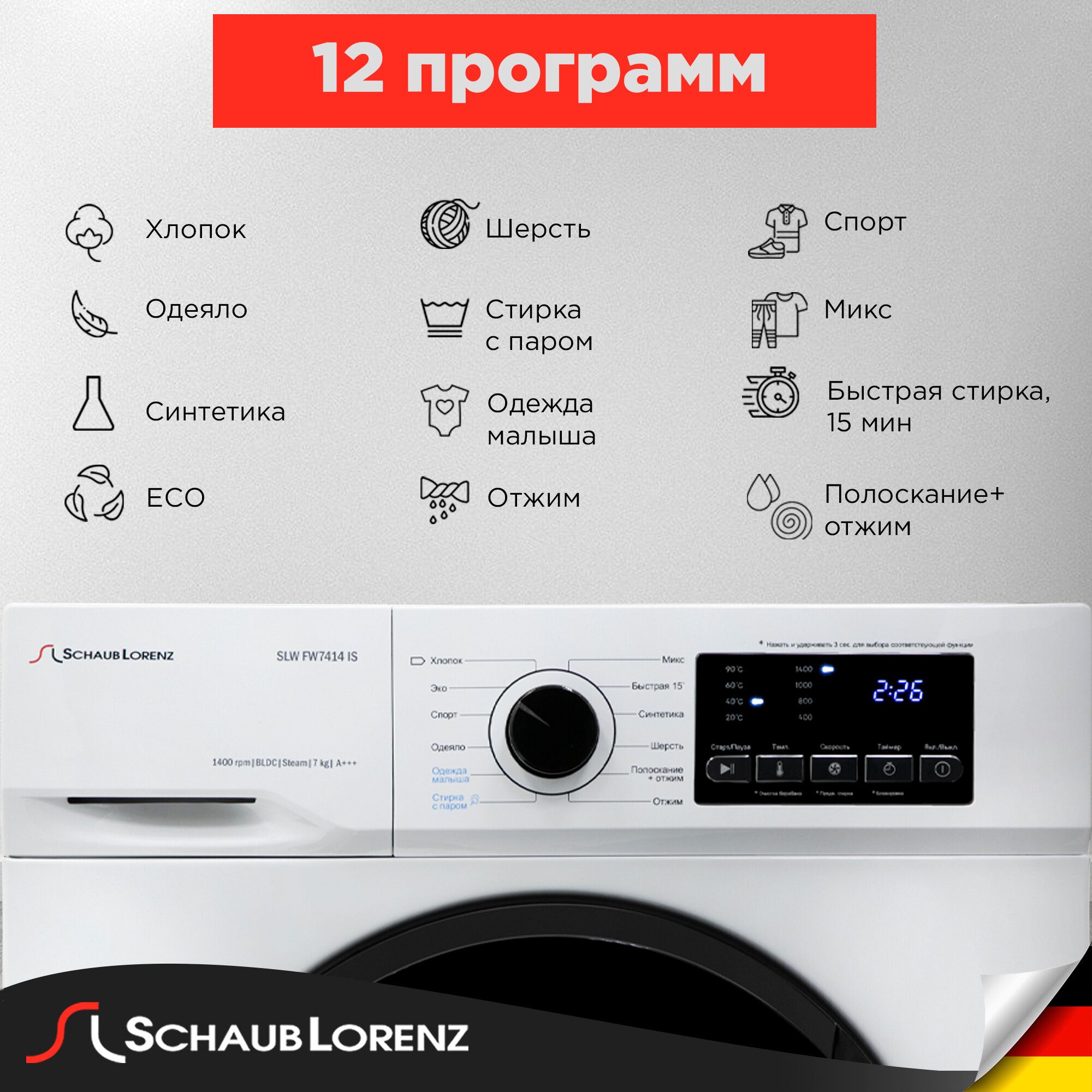 Стиральные машины Стиральная машина Schaub Lorenz SLW FW7414 IS, 7 кг, 1400 об, инвертор, Функция пара (Steam Assist), 12 программ
