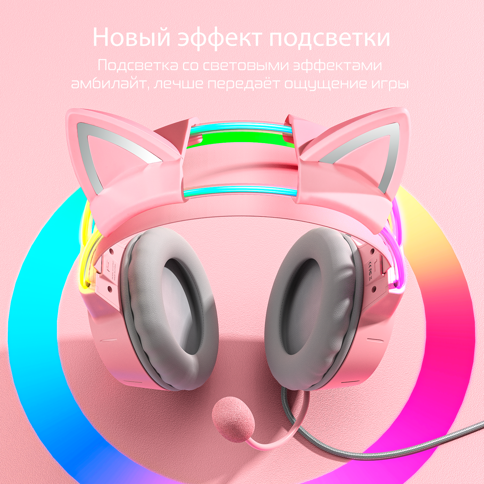 Наушники Игровые наушники ONIKUMA X15 pro Pink Star розовые с кошачьими ушками и подсветкой
