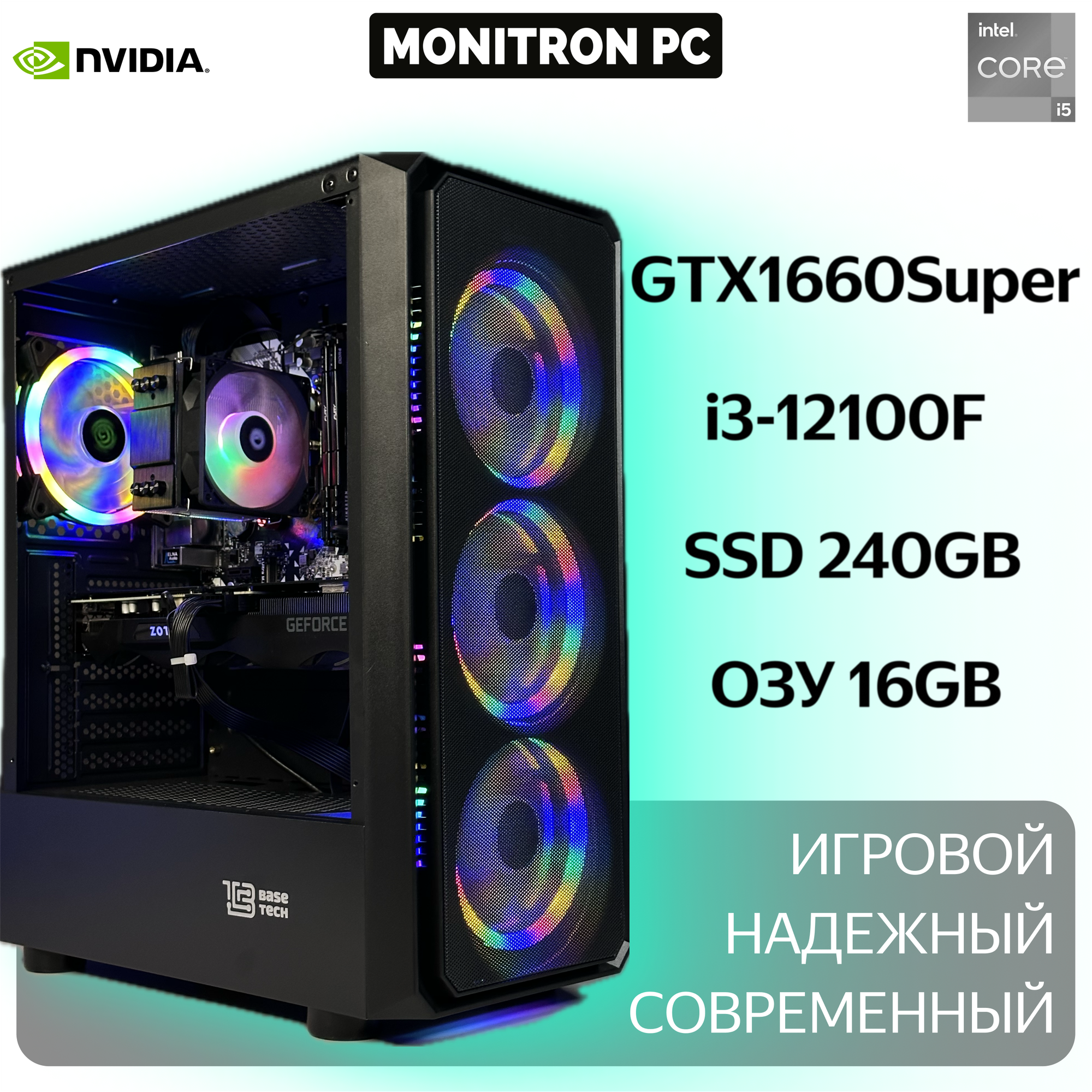 Лучшие цены. Игровой компьютер Intel Core i3-12100F / GTX1660 S (6GB) / RAM 16GB / SSD 240GB Высокая производительность и качество графики Игровой компьютер оснащен процессором Intel Core i3-12100F с частотой 3,3 ГГц, который обеспечивает высокую скорость работы и плавную графику в любых приложениях. Видеокарта NVIDIA GeForce GTX 1660 SUPER с 6 ГБ видеопамяти позволяет запускать самые требовательные игры на высоких настройках. Магазины в вашем городе.
