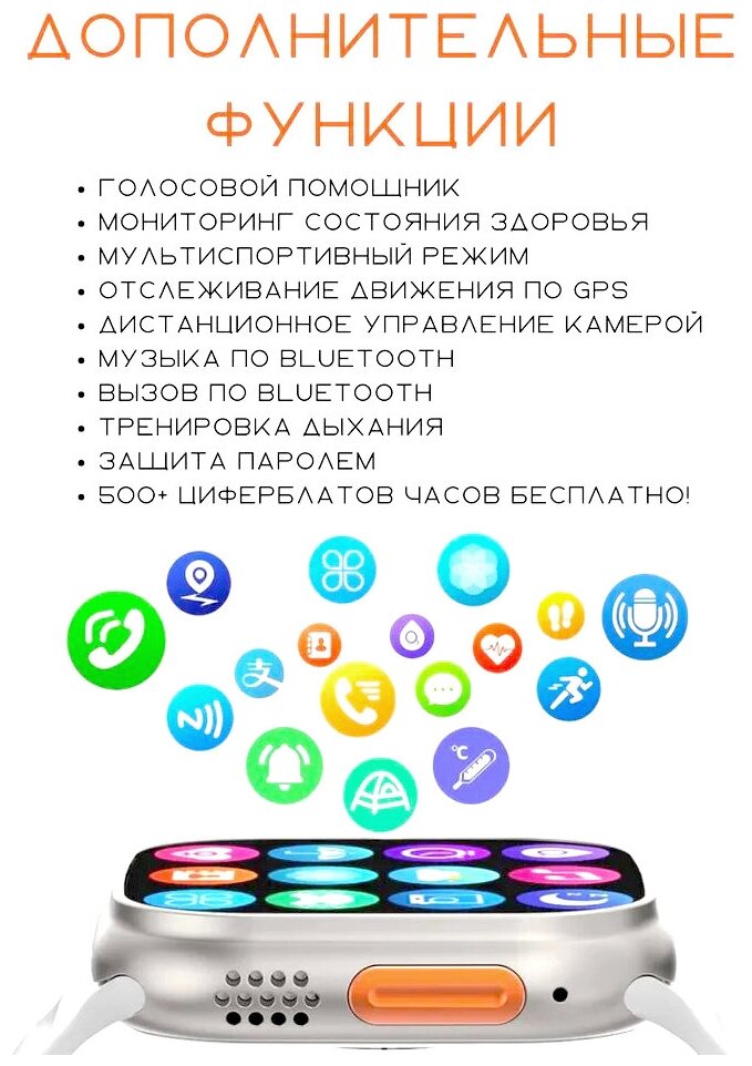 Смарт часы и фитнес браслеты Смарт часы Premium Series X8 Plus Ultra, с влагозащитой, дисплей 49mm