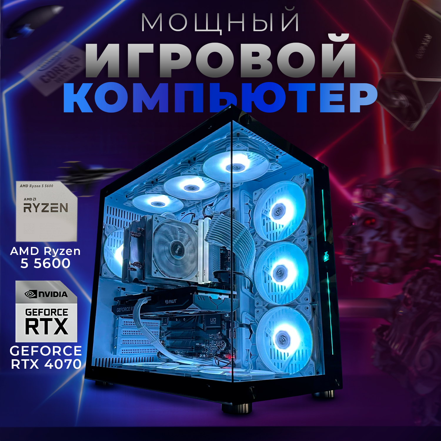 Персональные компьютеры Системный блок игровой ПК компьютер AMD Ryzen 5 5600, GeForce RTX 4070, 2TB SSD M2