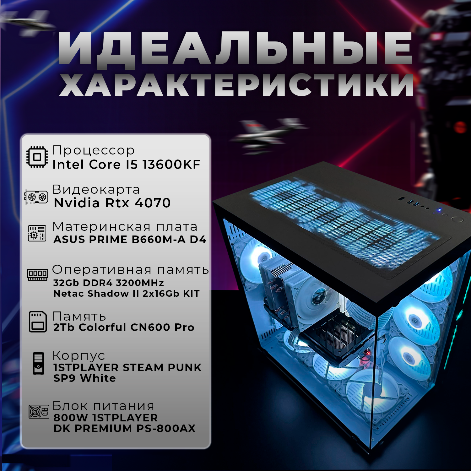 Персональные компьютеры Системный блок игровой ПК компьютер Intel Core i5-13600KF, GeForce RTX 4070, 2TB SSD M2