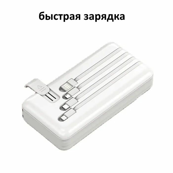 Powerbank Внешний аккумулятор 30000 mAh с разъемами USB, Type-C и micro белый, повербанк с быстрой зарядкой