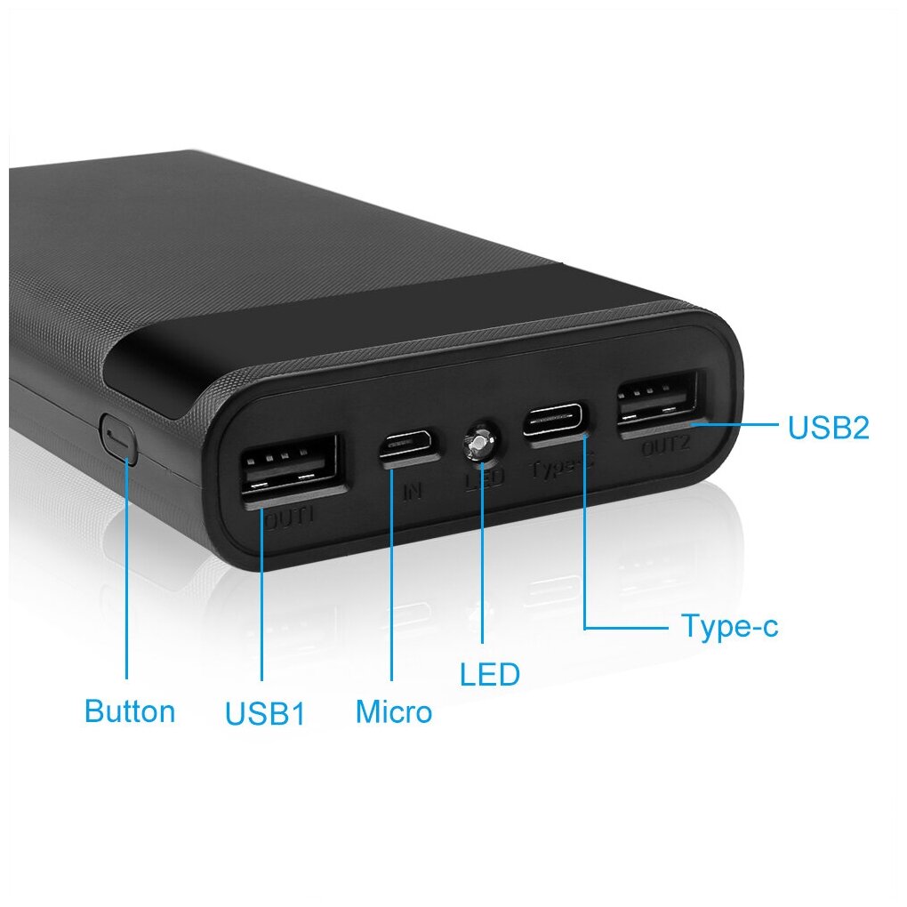 Powerbank Корпус для PowerBank с двумя USB-портами, 5 В, 6*18650 чёрный