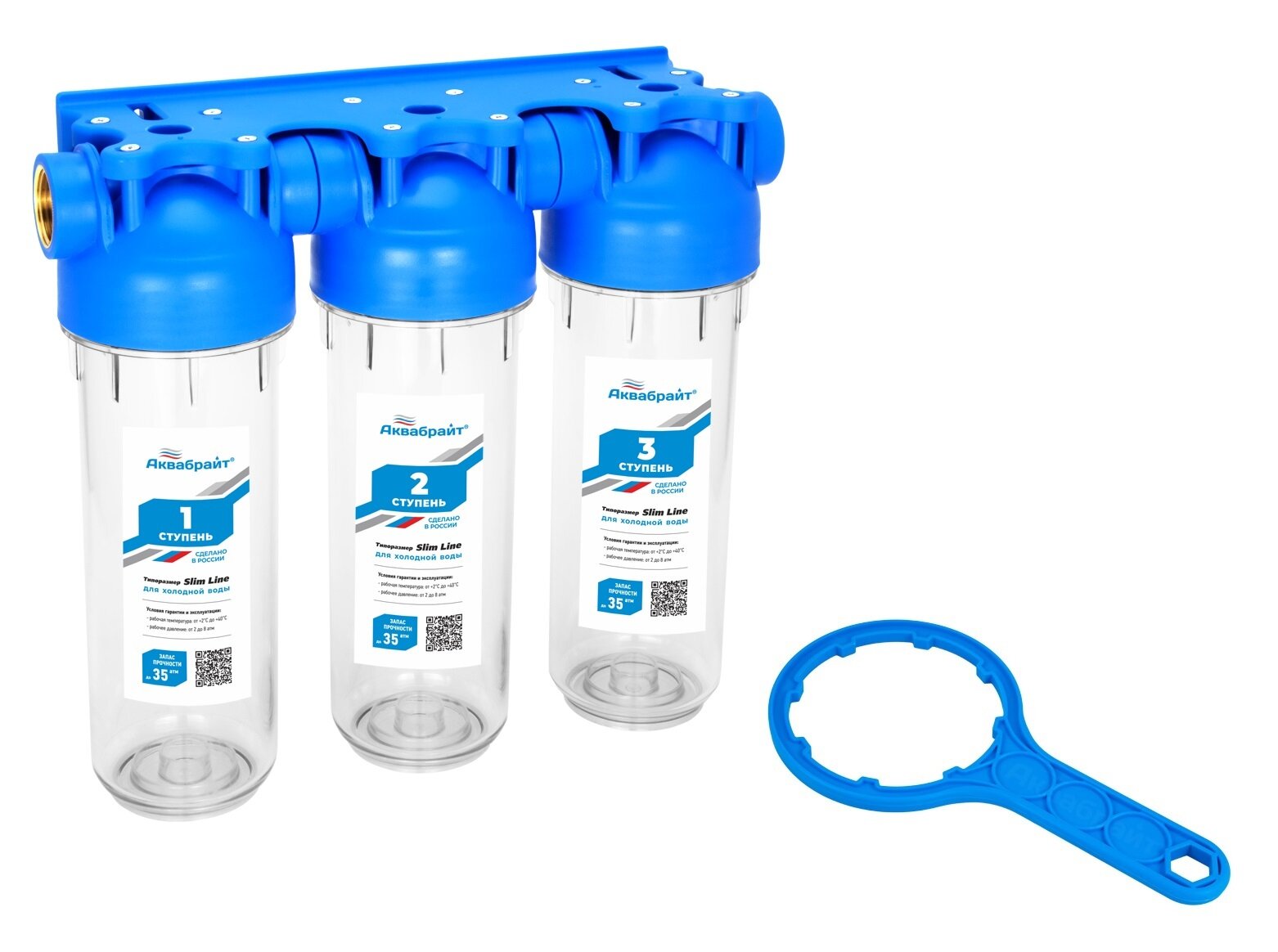 Фильтры для воды Магистральный фильтр Аквабрайт АБФ-10-12-3 для холодной воды 3-х ступенчатый/Корпус магистрального фильтра абф-10 1/2"
