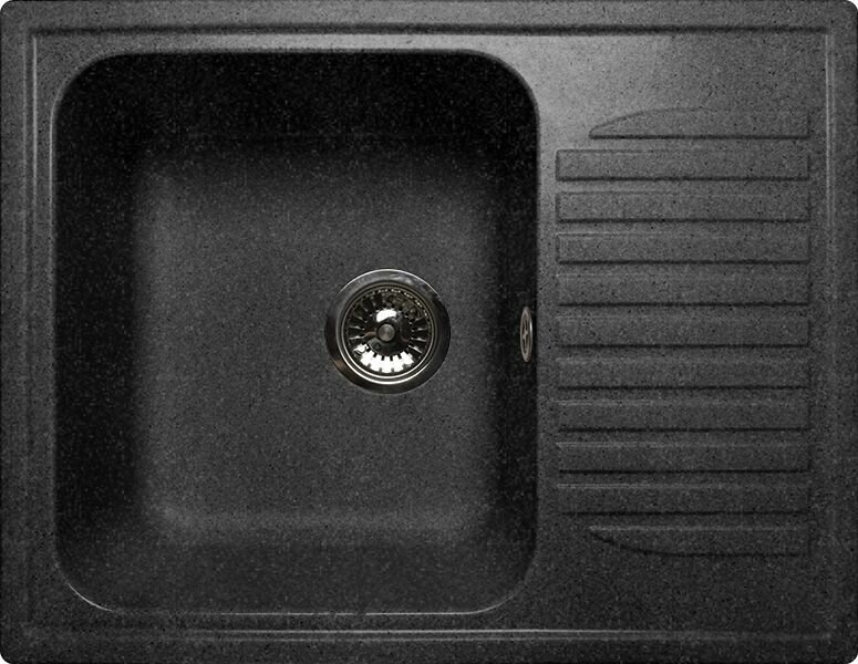 Мойка кухонная врезная, GranFest, Standart, искуственный мрамор, 645х498 мм, + сифон, черная, GF-S645L