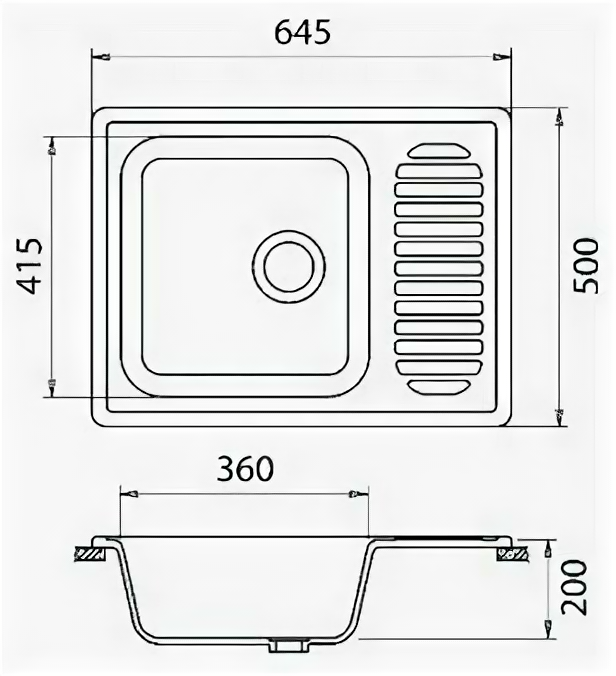 Врезная кухонная мойка 64.5 см, GranFest Standart GF-S645L, черный