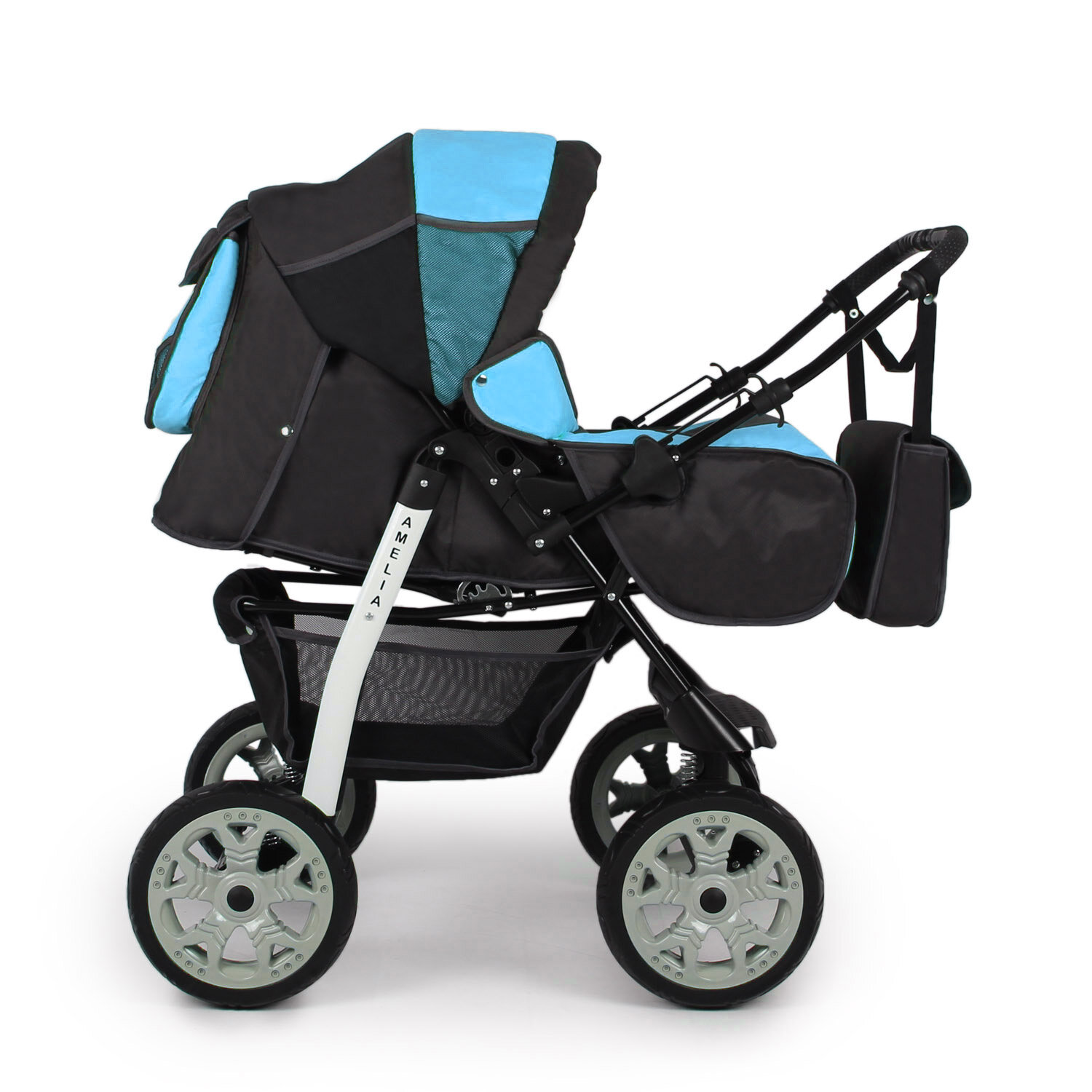 Коляска-трансформер Alis Amelia универсальная всесезонная с люлькой-переноской (06), бирюзовый, светло-серый