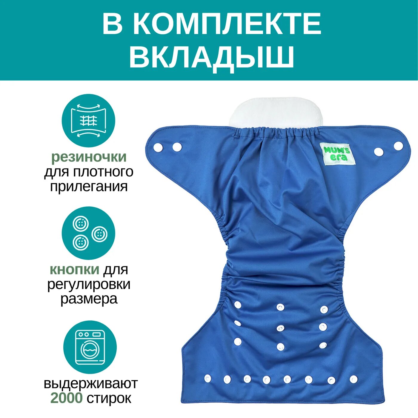 Лучшие цены. Mum's Era Многоразовый подгузник + 1 вкладыш Многоразовый подгузник - это удобно, экономно, надежно и экологично! В комплект входит подгузник и 1 вкладыш из супервпитывающего материала (микрофибра). Подгузник состоит из трех частей. Верх подгузника - это мембранный слой, который благодаря уникальным свойствам мембраны с одной стороны пропускает воздух, дышит, а с другой — удерживает влагу внутри. Магазины в вашем городе.