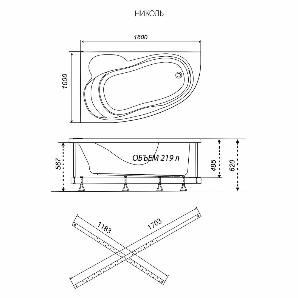 Лучшие цены. Ассиметричная ванна 160*100*62см на каркасе, в левый угол. Слив-перелив и лицевой экран приобретается отдельно. Магазины в вашем городе.