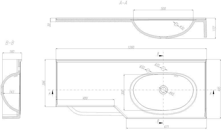 Умывальник Раковина AQUATON отель 2/1270 правая