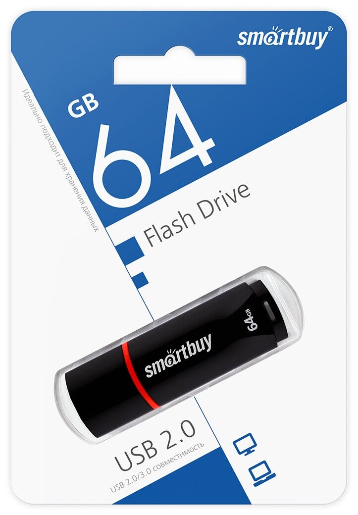 Лучшие цены. Флеш-память Smartbuy Crown, 64Gb, USB 2.0, чер, SB64GBCRW-K В дизайне флеш-памяти Smartbuy Crown - простота и стиль, а отверстие для шнурка позволяет прикрепить накопитель к Вашему телефону или связке ключей, чтобы он всегда был под рукой. Дизайн устройства предусмотрен таким образом, что колпачок можно прикрепить сзади корпуса (по типу шариковой ручки), что позволяет не потерять его.- Простой, и стильный дизайн.- Отверстие для шнурка. Магазины в вашем городе.