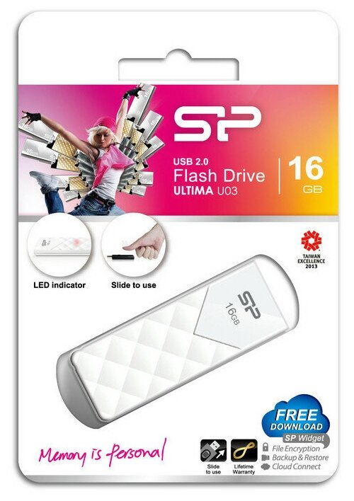 Silicon Power Флеш-память Silicon Power Ultima U03, 16Gb, USB 2.0, белый, SP016GBUF2U03V1W