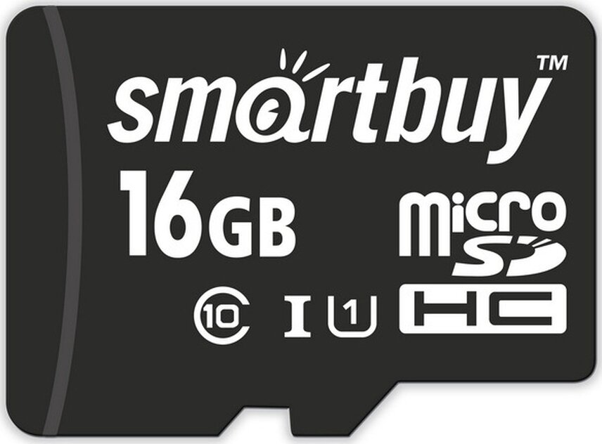 Карты памяти Карта памяти SmartBuy microSDHC 16 ГБ Class 10, UHS-I U1, R/W 18/30 МБ/с, 1 шт., черный