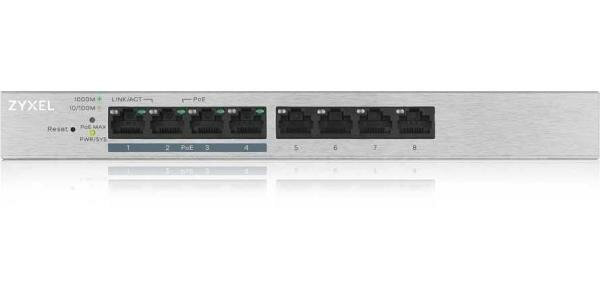 ZYXEL GS1200-8HPV2-EU0101F Коммутатор 8xGE 4xPoE+ , настольный, бесшумный без вентилятора , с поддержкой VLAN, IGMP, QoS и Link Aggregation, бюджет PoE 60 Вт